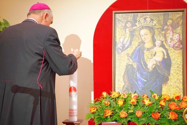 Ducha Świętego przywoływano podczas Nieszporów, które pod kierunkiem ks. Łukasza Kucharskiego poprowadziła schola liturgiczna „Cantemus Domino” przy Centrum Formacji Liturgicznej Diecezji Bydgoskiej. Poprzedziło je zapalenie przez biskupa świecy synodu. Takie same trafią do wszystkich parafii i będą nieodłącznym elementem inauguracji synodu w poszczególnych wspólnotach, które zaplanowano na Niedzielę Bożego Miłosierdzia – 12 kwietnia.