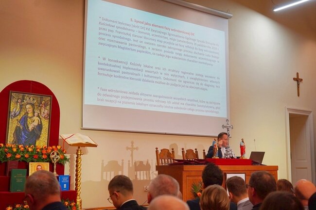 Synod diecezjalny został ukazany jako wydarzenie duchowe, zakorzenione w modlitwie, słuchaniu słowa Bożego i nawróceniu. – Synodalność wypływa z natury Kościoła jako komunii trynitarnej i realizuje się poprzez współdziałanie darów, powołań i posług, które mają charakter wspólnotowy i misyjny. Jednocześnie synod ma wymiar pastoralny: cały Kościół jest podmiotem działania, a wszyscy wierni współodpowiadają za jego misję, przy zachowaniu roli biskupa jako tego, który podejmuje ostateczne decyzje. Istotnym elementem jest także synodalne podejście do zarządzania, zakładające świadome towarzyszenie procesom eklezjalnym przez osoby kompetentne i uformowane – powiedział ks. dr hab. Grzegorz Barth, prof. KUL, kapłan diecezji bydgoskiej.