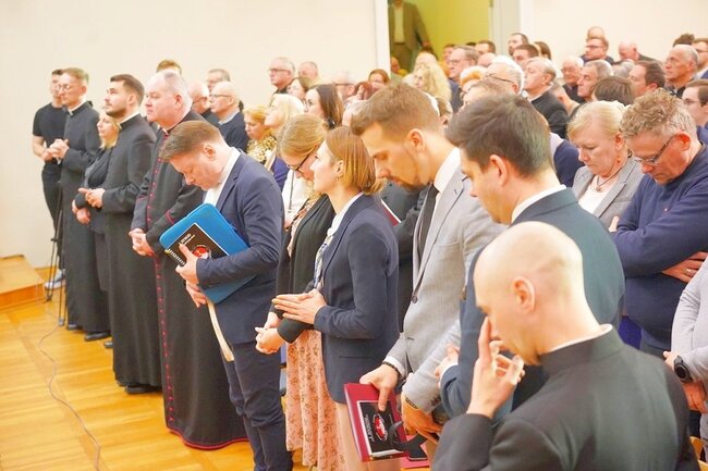 „To zaproszenie do współodpowiedzialności oraz otwartości na Ducha Świętego – synod daje taką możliwość. Chciałbym, żeby się wydarzyło wielkie dobro dla naszej diecezji” – powiedział ordynariusz, bp Krzysztof Włodarczyk. – Ta aula dawno nie widziała takiego Bożego oblężenia. Czujemy się jak w Wieczerniku, czekając na zesłanie Ducha Świętego. Jezus Chrystus – Alfa i Omega, początek i koniec – zaprasza nas do otwarcia kolejnego rozdziału w historii diecezji bydgoskiej – podkreślił ks. dr Piotr Wachowski, witając zebranych.