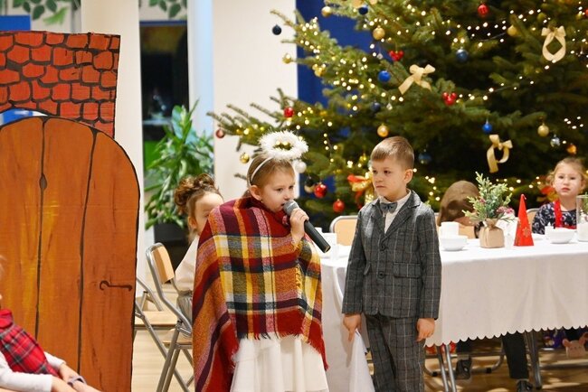 Mali artyści z ogromnym zaangażowaniem wcielili się w swoje role, zachwycając zgromadzoną publiczność. Szczególnym momentem wydarzenia było kolędowanie w wykonaniu Mam z Rady Rodziców, które dodało spotkaniu rodzinnego charakteru. Podczas świątecznego spotkania życzenia wszystkim przedszkolakom, pracownikom przedszkola oraz rodzicom złożyła Pani Dyrektor Anna Przybylska oraz Pani Lidia Skiba - Wiceprzewodnicząca Rady Miejskiej w Mroczy. Nie zabrakło długo wyczekiwanego gościa, czyli Świętego Mikołaja. Był to dzień pełen wzruszeń i prawdziwej świątecznej radości.