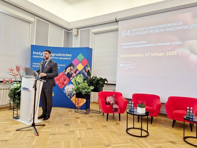 Przedstawiciele Głównego Inspektoratu #Ochrony Roślin i Nasiennictwa uczestniczyli w 64. Ogólnopolskiej Konferencji Ochrony Roślin Sadowniczych organizowanej przez Instytut Ogrodnictwa - PIB pod hasłem „Sadownictwo 2026 - klimat, bezpieczeństwo i wymogi rynku”. W wydarzeniu udział wzięły Magdalena Makowska - Główny Inspektor Ochrony Roślin i Nasiennictwa oraz Agnieszka Sahajdak - Dyrektor Biura Nadzoru Fitosanitarnego i Współpracy Międzynarodowej GIORiN, która zaprezentowała temat Warunki fitosanitarne eksportu owoców poza Unię Europejską i wzięła udział w debacie poświęconej wyzwaniom sezonu 2026 w ochronie roślin sadowniczych.