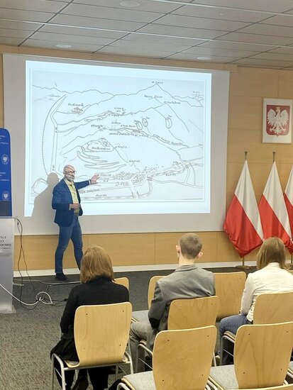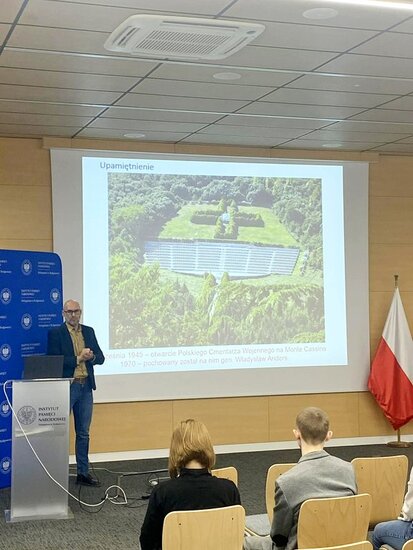 Mirosław Sprenger z Referatu Edukacji Narodowej wygłosił wykład na temat bitwy o Monte Cassino jako części kampanii włoskiej w II wojny światowej i udziału w niej żołnierzy 2. Korpusu Polskiego.
