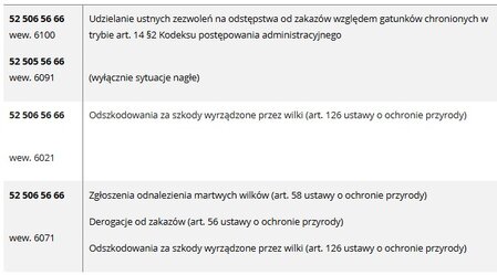 Poniżej telefony do RDOŚ w Bydgoszczy, dotyczące spraw związanych z wilkami.