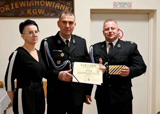 Na druhów czekała niespodzianka - Sołtys pani Anita Wydef, na ręce Prezesa Radosława Mrugowskiego, przekazała voucher podarunkowy w kwocie 3 500,00 zł, jako formę wsparcia zadań statutowych jednostki.