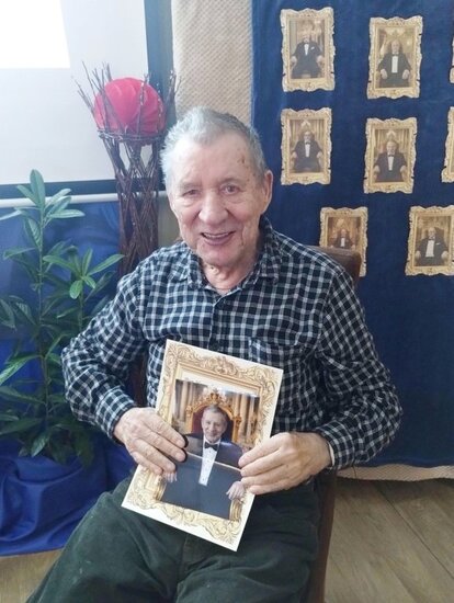 Kulminacją uroczystości była wyjątkowa odsłona każdego z naszych seniorów. Dla każdego Pana przygotowano indywidualny wiersz opisujący jego charakter, pasje i poczucie humoru oraz pamiątkowy dyplom. Dodatkowo każdy z Panów otrzymał swoje zdjęcie wykonane w eleganckiej stylizacji – niczym prawdziwy dżentelmen z klasycznego filmu.