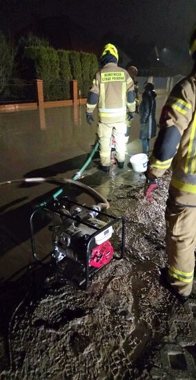 Mimo braku formalnego alarmowania postanowiliśmy działać i wesprzeć mieszkańców naszej miejscowości w ramach ćwiczeń. W ruch poszły pompy, i tam, gdzie było to możliwe, wypompowaliśmy wodę z ulic i posesji.