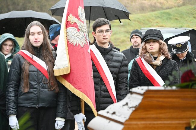 Uczestnicy uroczystości pożegnali Jana Gawrońskiego składając kwiaty i wieńce na jego mogile.