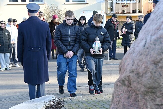 Obchody rozpoczęła msza święta odprawiona w kościele pw. Zwiastowania Najświętszej Maryi Panny w Potulicach. W nabożeństwie uczestniczyli mieszkańcy, przedstawiciele instytucji oraz zaproszeni goście, oddając hołd ofiarom obozu i modląc się za tych, którzy nie doczekali wolności. Po zakończeniu mszy uczestnicy uroczystości przeszli pod tablicę pamiątkową znajdującą się przy dawnej bramie głównej obozu. To właśnie tam, w miejscu naznaczonym cierpieniem tysięcy ludzi, złożono wiązanki kwiatów i zapalono znicze – symbol pamięci i szacunku dla ofiar niemieckiego terroru.