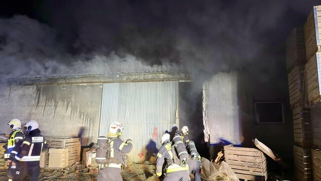 Pożar w gospodarstwie rolnym. Akcję utrudniało oblodzenie