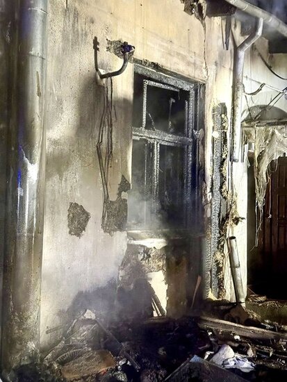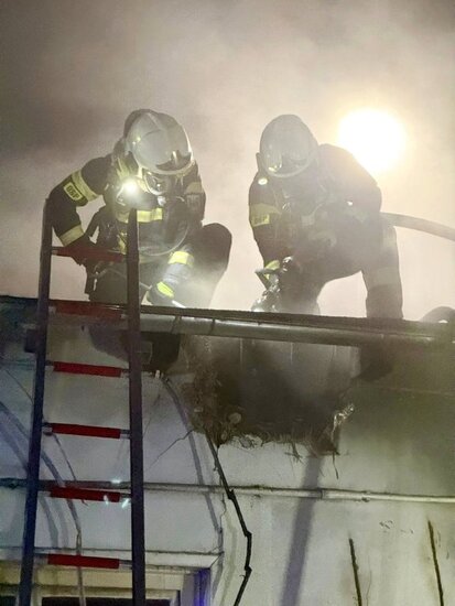 Po przybyciu na miejsce okazało się, że sytuacja jest o wiele bardziej poważna niż pierwotnie zakładano, pożarem objęte były nie tylko śmieci, ale również elewacja budynku, poszycie dachu oraz jedno z mieszkań. Ogień szybko się rozprzestrzeniał, stwarzając zagrożenie dla obiektu. W budynku znajdowali się śpiący mieszkańcy, których ewakuację prowadzili obecni na miejscu policjanci oraz strażacy. Na szczęście w wyniku zdarzenia nikt nie odniósł obrażeń.