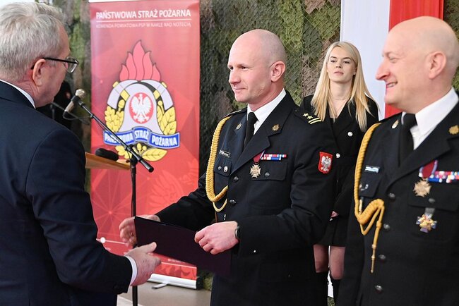 W środowej uroczystości oprócz strażaków pracujących w nakielskiej komendzie, uczestniczyli także przedstawiciele władz samorządowych, służb mundurowych, instytucji współpracujących z Państwową Strażą Pożarną oraz zaproszeni goście, w tym m.in. Kujawsko-Pomorski Komendant Wojewódzki PSP st. bryg. Rafał Świechowicz.