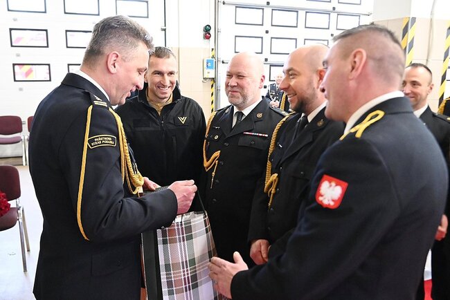 Jednym z głównym punktów strażackiego apelu było jednak zdanie obowiązków służbowych przez Komendanta Powiatowego PSP w Nakle, st. bryg. Sławomira Murawskiego – który z dniem 30 stycznia 2026 roku przejdzie na emeryturę. – Chcę podziękować wszystkim za ponad 32 lata służby, z czego ponad 30 lat w nakielskiej jednostce (…) Moim życiowym pragnieniem nie było zostać strażakiem. W 1992 roku będąc studentem AWF w Poznaniu, rozpocząłem praktyki z uczniami i stwierdziłem, że to nie dla mnie. I wtedy moja przyszła teściowa zapytała mnie, czy nie chciałbym zostać strażakiem. Pomyślałem – dlaczego nie? Rozpocząłem przygotowania i już w kolejnym roku zostałem kadetem w Szkole Aspirantów (…) Dobrze pamiętam swoje pierwsze akcje ratownicze, pierwszy śmiertelny wypadek między Strzelewem a Minikowem, pierwszy duży pożar w Bninie. Takie zdarzenia zapadają w pamięć. Nauczyłem się tutaj w Nakle strażackiego życia. Moi dawni przełożeni pokazali mi, że wiedza, a umiejętność jej spożytkowania – wymaga ode mnie samokrytyki, pokory i ciągłej pracy. Nauczyli mnie, że w straży nie ma miejsca dla indywidualistów. Zawsze liczy się zespół (…) Moi drodzy współpracownicy – dziękuję Wam za wspaniałą pracę i brak konfliktów – powiedział ustępujący ze stanowiska komendant.