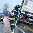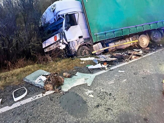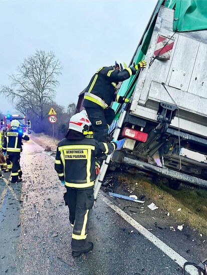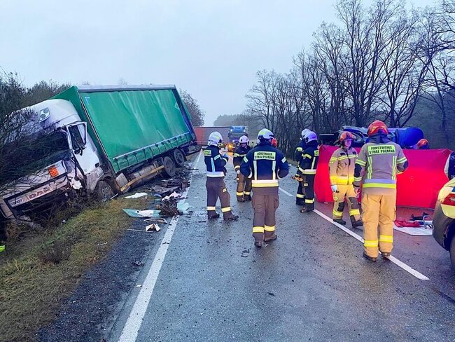 Strażacy po powrocie nie nacieszyli się spokojem zbyt długo. O godzinie 7:07 odebraliśmy kolejne zgłoszenie również dotyczące wypadku drogowego. Tym razem samochód dostawczy zderzył się z ciężarowym. Jako pierwszy na miejscu pojawił się zastęp z Solca Kujawskiego. Po dotarciu na miejsce potwierdzono zgłoszenie w wypadku udział brały 3 osoby niestety jedna z tych osób zginęła na miejscu. Obecnie na miejscu wypadku pracują służby. Utrudnienia mogą potrwać nawet kilka godzin.