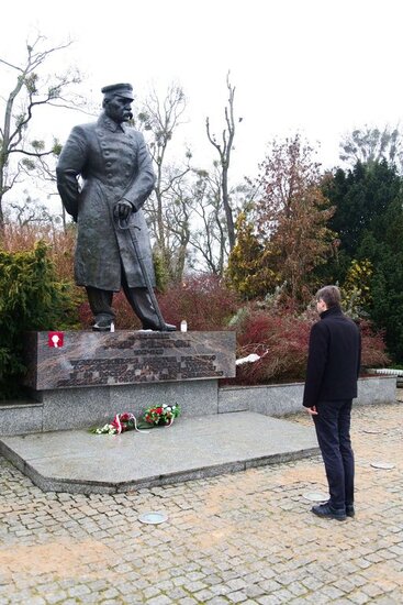 W imieniu #IPNBydgoszcz kwiaty pod pomnikiem Marszałka złożył Marcin Pietruszewski. Pamięć o twórcy niepodległej Polski to nasz obowiązek i wyraz szacunku dla historii. Cześć Jego pamięci!