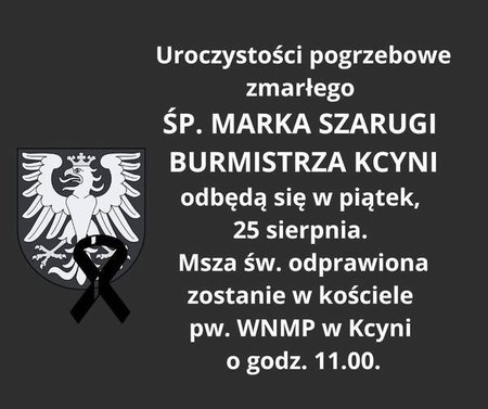 Uroczystości pogrzebowe zmarłego nagle #Śp. Marka Szarugi, Burmistrza Kcyni odbędą się w piątek, 25 sierpnia.