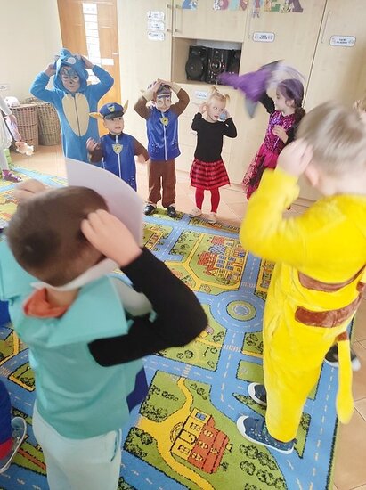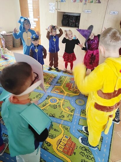 Przedszkolaki świetnie wcieliły się w swoje postacie, pokazując, że wyobraźnia nie ma granic.