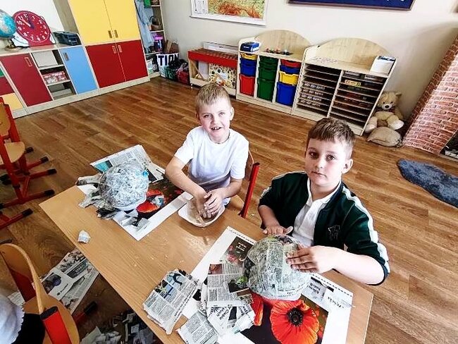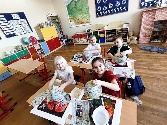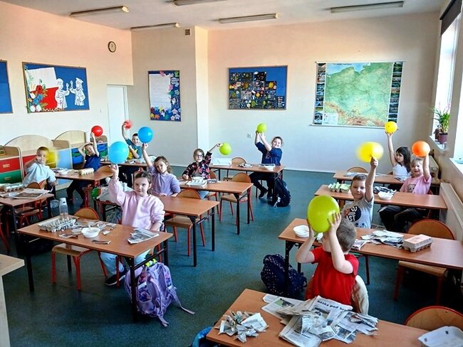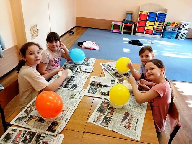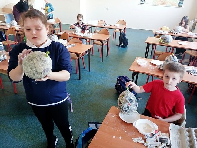 Jednym z punktów przedsięwzięcia są warsztaty plastyczne, podczas których uczniowie wykonują świnkę skarbonkę. Za nami pierwszy etap warsztatów! Podstawowym materiałem do wykonania skarbonki był nadmuchany balon, następnie przygotowanie kleju z mąki i wody oraz skrawki czarno-białych gazet. Dzieci nałożyły dwie warstwy masy papierowej. Podczas kolejnych warsztatów uczestnicy doklejać będą do masy uszy, nos i nogi. Po całkowitym utwardzeniu balon zostanie przebity i wyciągnięty. Etap trzeci to malowanie skarbonek.