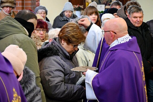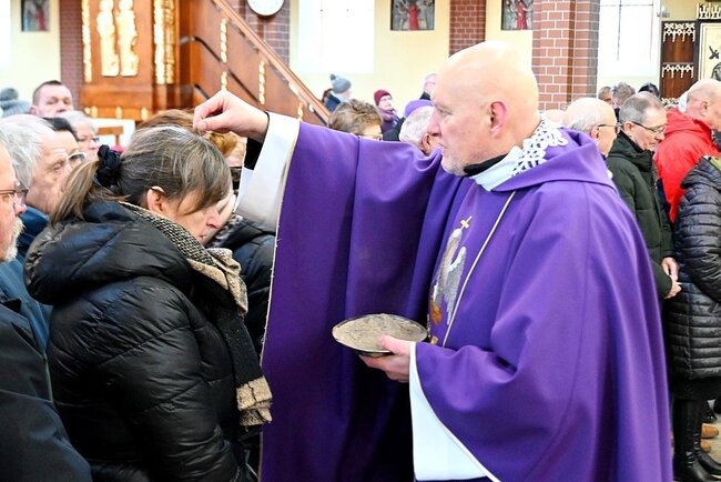 Podczas mszy świętej kapłani dokonali obrzędu posypania głów popiołem, czyniąc na czole wiernych znak krzyża. Towarzyszyły temu słowa przypominające o przemijaniu i potrzebie nawrócenia: „Prochem jesteś i w proch się obrócisz” lub „Nawracajcie się i wierzcie w Ewangelię”. Symboliczny gest ma przypominać o kruchości ludzkiego życia oraz wezwaniu do przemiany serca.