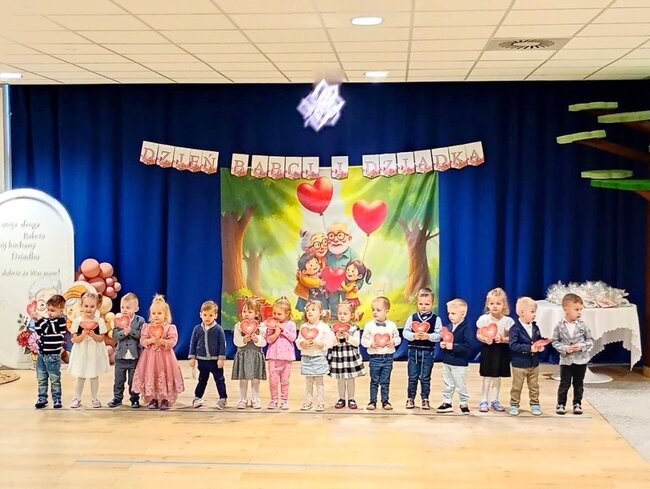 Wszystkie grupy przygotowały wyjątkowe przedstawienia. Przed każdym występem Pani Dyrektor Anna Przybylska witała przybyłych gości. Publiczność trzymała kciuki za swoje pociechy, wspierając je gromkimi brawami. Każda grupa obdarowała swoich dziadków wyjątkowymi upominkami. Rodzice zadbali o atmosferę, przynosząc ze sobą słodkości oraz przygotowując specjalną strefę, gdzie można było zrobić pamiątkowe zdjęcie. Na koniec uroczystości Pani Dyrektor serdecznie podziękowała wszystkim nauczycielom oraz pracownikom przedszkola za ich ogromny wkład w przygotowanie dzieci.